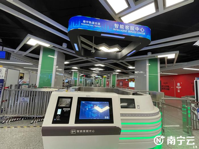 在南寧地鐵智慧車站首批試點之一的地鐵5號線廣西大學站里,多個“智能助手”為乘客便捷出行提供服務——進站口的票務自助處理終端會“講話”,具備票務處理、票卡查詢、乘車查詢、出站口指引等多項功能;出入口的智能顯示屏可查詢附近的景點、美食;智能問詢機器人會“唱歌”,還能“親自”送乘客到出口;站臺屏蔽門上方的導乘屏實時顯示站名、運行方向、列車到站時間、車廂人流量等信息,讓人一目了然;智慧車站綜合管控平臺仿若一個智能大腦,既能實時統計、分析車站的客流情況,實時監控各項設備運行狀態,還可根據人流密度等自動調節照明、空調等,讓車站管理更智能、更高效。