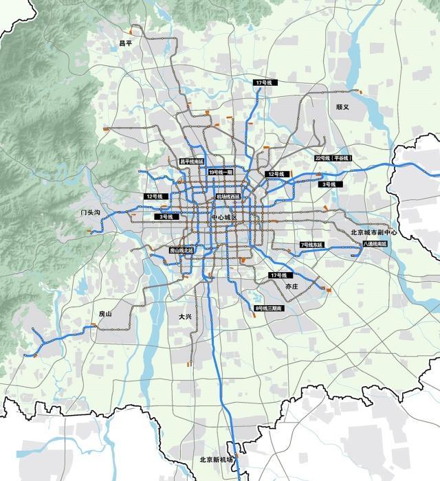 北京的郊區城鎮集中在行政中心,適合傳統地鐵線路