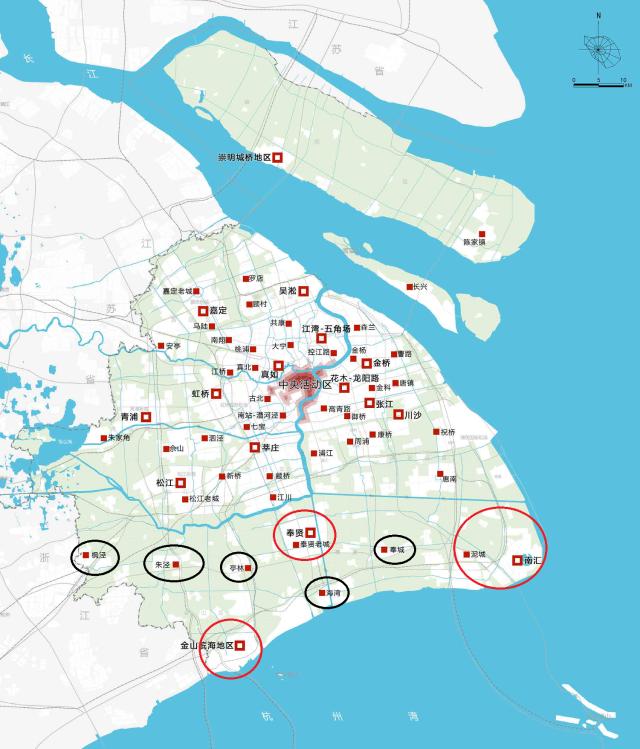 一個非常值得注意的問題就是,上海市黃浦江以南的地區最大的特點就是分散的大城鎮,這與北京郊區城區僅集中在行政中心的情況,有著本質的不同。