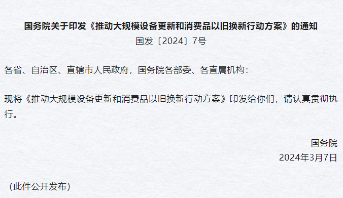 推動大規(guī)模設備更新和消費品以舊換新行動方案