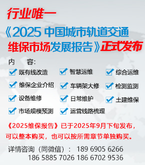 《2025中國城市軌道交通維保市場發展報告》分為總述篇、工程篇、設備篇、綜合篇、發展篇五大篇章,共18章,涉及領域包括維保設計、土建設施維保、車輛維保、供電維保、通信維保、信號維保、綜合監控系統維保(含F...